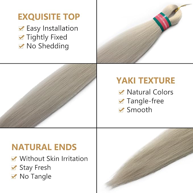 Silver Pre stretched Braiding Hair 2 Packs Pre feathered Braid Hair Extensions 30 Inches Hair Braids