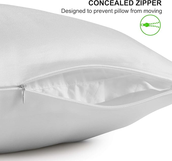 ALASKA BEAR Silk Pillowcase for Hair and Skin, Set of 2 Pure Genuine 22 Momme Mulberry Silk Pillow Cases King Size for Bliss Sleep Better Than Poly Satin, Zipper Closure(2pc, Cool White)