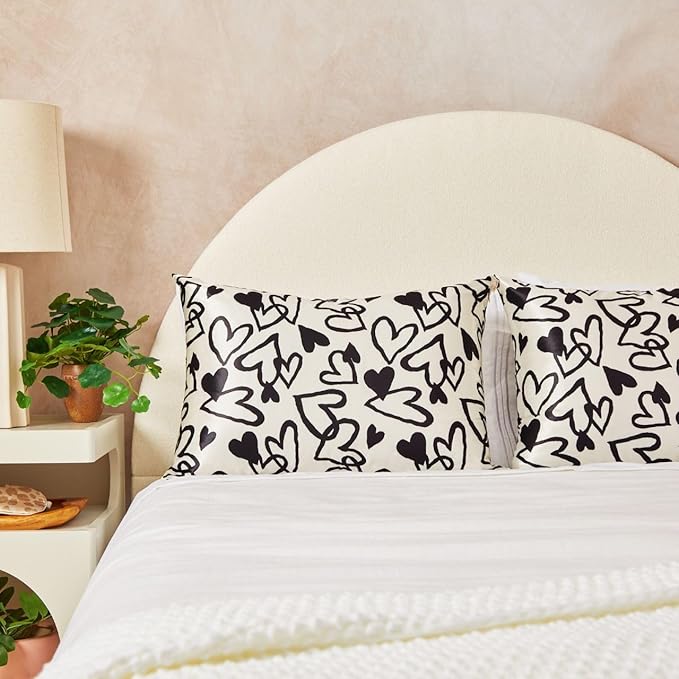 Kitsch Satin Pillowcase with Zipper for Hair & Skin, Softer Than Silk Pillow Cases Queen, Wrinkle-Free, Smooth and Cooling Satin Pillow Covers, Standard Size 19"x26" - Heart