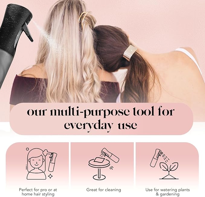 - MULTI-USE MISTER FOR HAIR, PLANTS, & MORE: More than just a hair spray bottle—this versatile spray bottle works great for facial toners, alcohol-based solutions, light cleaners, or plant misting. Refillable and easy to clean for all-around home and beauty use.