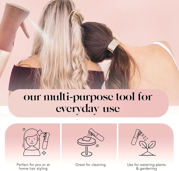 - MULTI-USE MISTER FOR HAIR, PLANTS, & MORE: More than just a hair spray bottle—this versatile spray bottle works great for facial toners, alcohol-based solutions, light cleaners, or plant misting. Refillable and easy to clean for all-around home and beauty use.