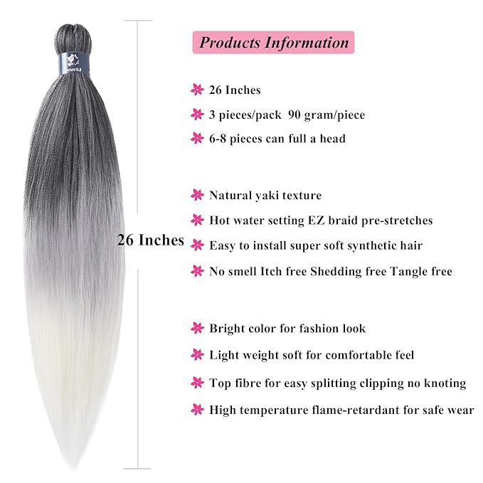- ❤️ Packags: Prestretched Braiding Hair 26 Inch Folded 52inch Unfolded, Packs Of 3, 10.5 Ounce.Itch Free Yaki EZ to Braid Pre Stretched Braiding Hair.