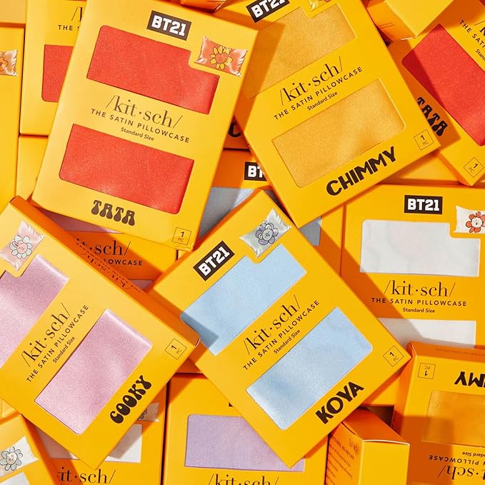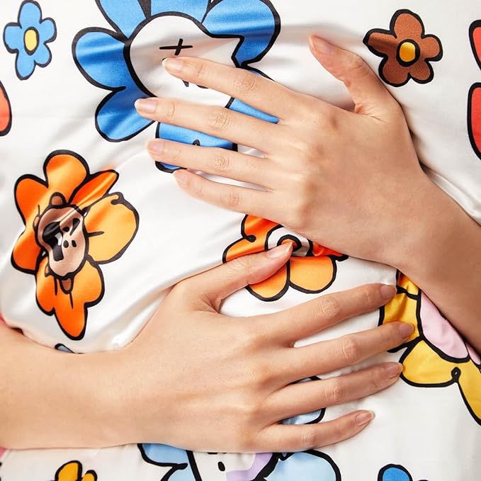 Kitsch x BT21 Satin Pillowcase with Zipper – Better Than Silk Pillowcase, RJ Character & Funky Floral Print – Soft Cooling Toddler Bed Time Pillow Case for Hair & Skin – King Size 19x36