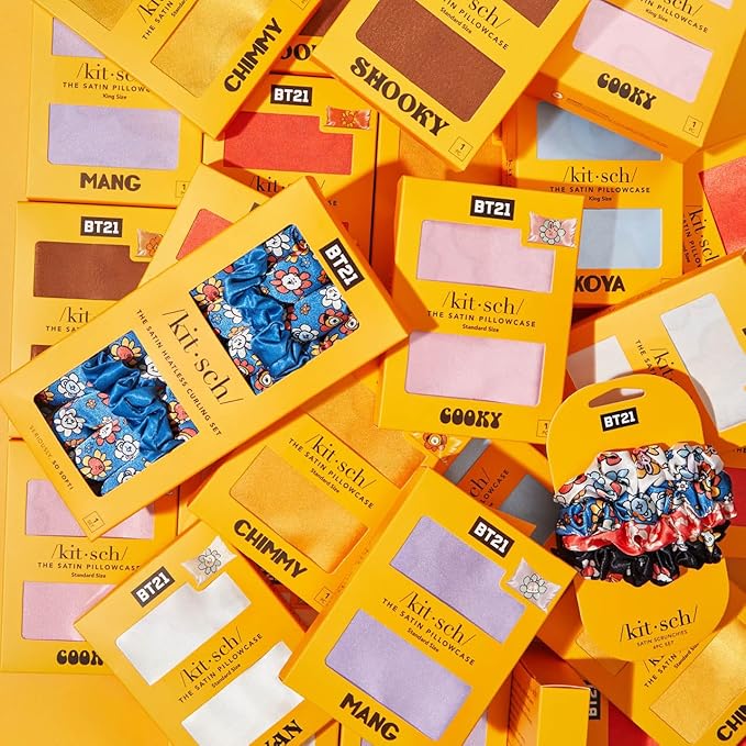 Kitsch x BT21 Satin Pillowcase with Zipper – Better Than Silk Pillowcase, Mang Character & Funky Floral Print – Soft Cooling Toddler Bed Time Pillow Case for Hair & Skin – King Size 19x36