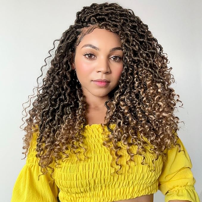 - ☎1. 【Material】: Goddess Locs Crochet Hair is Made by 100% High Quality Synthetic Fiber, Crochet Goddess Locs with Deep Curly in Middle and Ends.