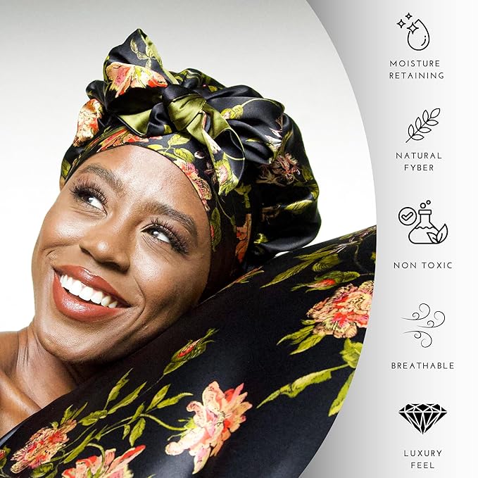 - Premium Mulberry silk construction for gentle, friction-free protection of hair