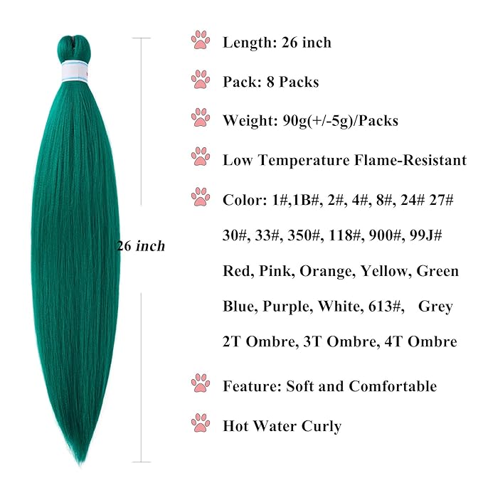 - Green Teal Braiding Hair Pre Stretched Made with Flame-retardant Synthetic Fiber Hair for Braiding Pre Stretched is Very Easy to Braid, Green Braiding Hair Hot Water Setting & Curled are Workable. Natural Look as Human Braiding Hair for Micro Braids, No Discoloration, No Itch, No Knots.