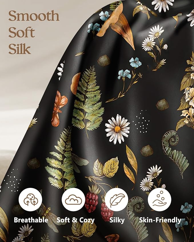 - Elegant Pattern Design: Featuring a chic black background adorned with delicate floral patterns, this pillowcase set adds a touch of sophistication and natural beauty to any bedroom decor. It has a cool body feeling, maintains a comfortable body temperature in hot weather. It is a good choice for birthdays, anniversaries, Valentine's Day, Mother's Day, Christmas, Thanksgiving, and New Year's Day
