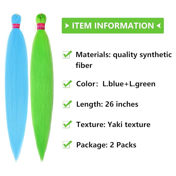 L.Blue+L.Green Braiding Hair Pre Stretched 2 Packs Box Braids Hair Extensions 26 Inches Synthetic Pre Stretched Braiding Hair