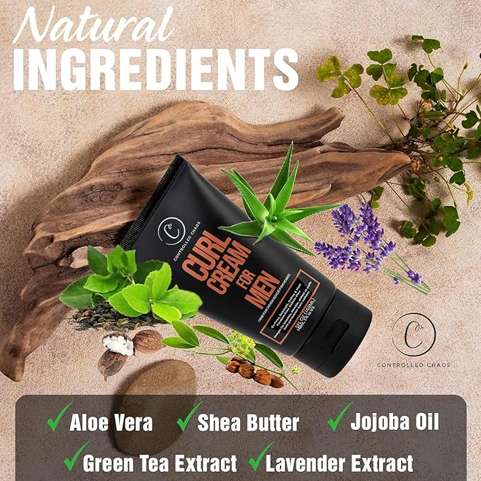 Controlled Chaos Curl Cream for Men - Hair Styling Cream For Wavy and Curly Hair With Shea Butter, Jojoba Oil, Coconut Oil, add Smoothness, Anti-frizz, Sulfate-Free Curl Cream (5oz)