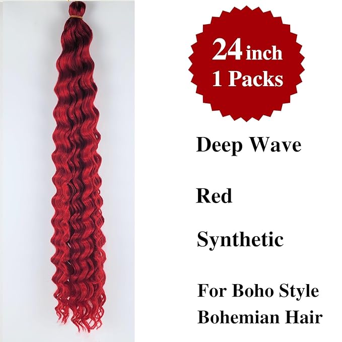 Red Boho Braiding Hair Pre stretched Boho Curly Deep Wave Crochet Boho Braids Prestretched Braiding Hair Extensions Synthetic Hypoallergenic Ez Braid Knotless