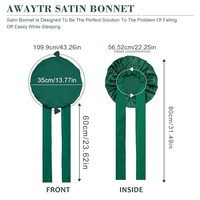 - SATIN BONNET WITH TIE BAND - Our satin bonnet is designed to be the perfect solution to the problem of falling off easily while sleeping. The bonnet comes with straps that you can adjust according to the size of your head circumference and fits most women and girls, even if you are an active sleeper you can fix it in the right position