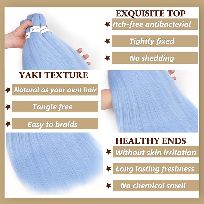 - 【Braiding Hair Pre Stretched Hair Advantage】:Our Braiding Hair Is Yaki Texture Natural Looking And Feel Soft As Human Hair,Long Lasting Freshness Without Skin Irritation. Very Light,Itch Free,No Tangle,No Shedding,No Chemical Smell,Sweat Resistant,Natural And Durable.