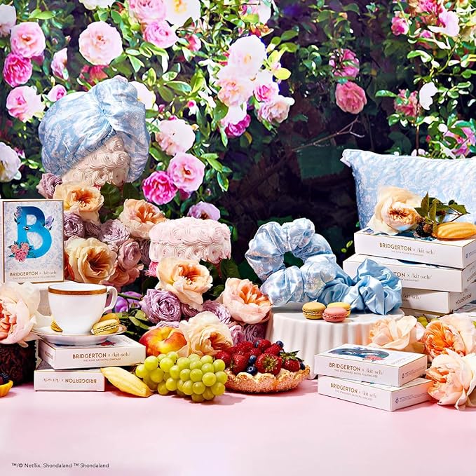 Kitsch x Bridgerton Satin Pillowcase with Zipper for Hair Skin, Softer Than Silk Pillow Cases, Wrinkle-Free, Cooling Satin Pillow Covers, Bridgerton - Toile De Blue, King Size (19x36)
