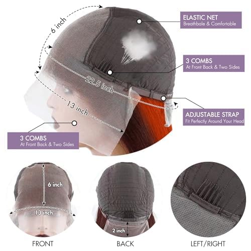 - 【13x6 Frontal Swiss Lace Type】13x6 HD Transparent Lace, Breathable and Durable, Natural Look, Medium Cap Size (Average 22.5 inch, 21-23.5 inch available) with Adjustable Strap, Elastic Band and Comb is Durable, Easy to Adjust and Comfortable to Wear and Fit. Wear Comfortablely.