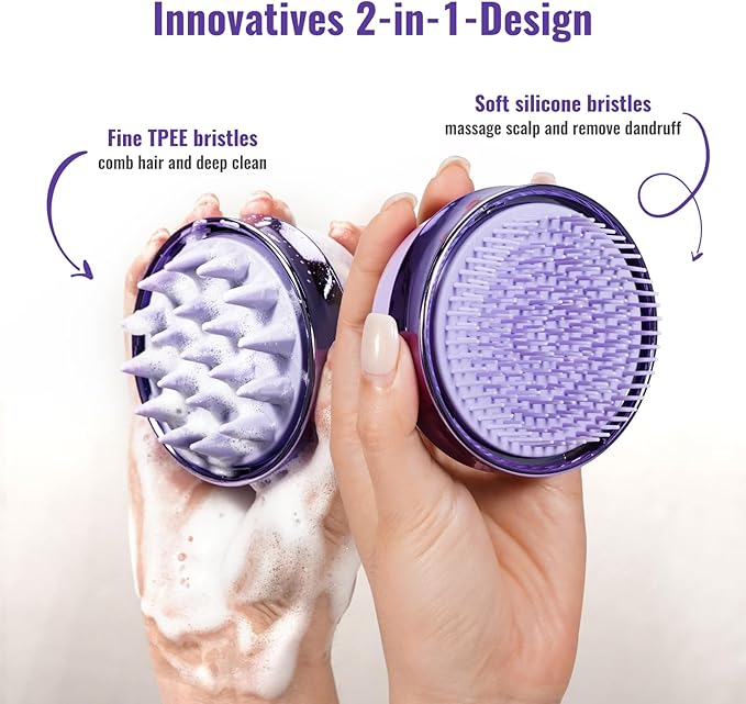 2 in 1 Scalp Massager Hair Growth,Scalp Scrubber with Soft Silicone Bristles for Dandruff Removal,Shampoo Brush for Exfoliation,Head Massager for Both Wet and Dry Use (Purple)