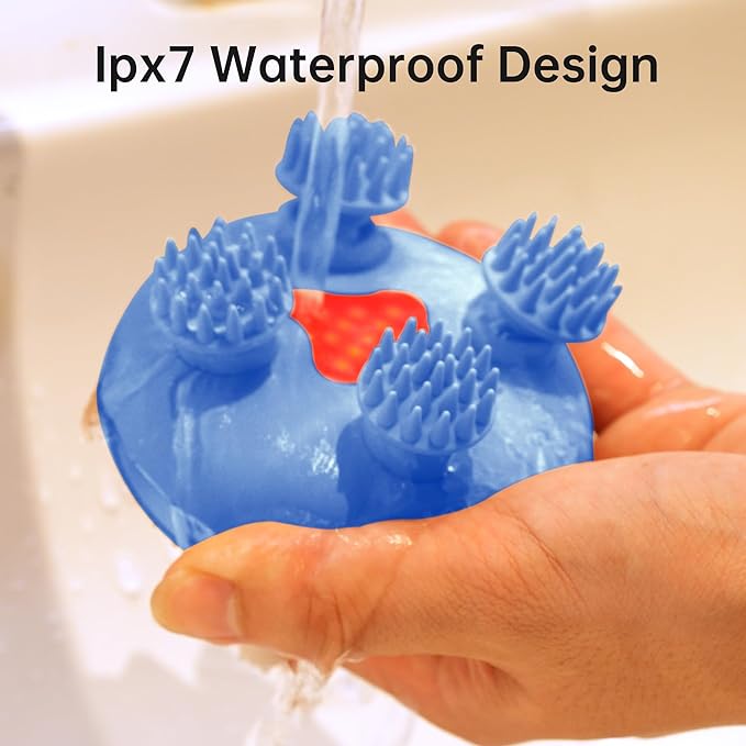 - 【 Waterproof & Skin-Friendly】Comfier IPX7 Waterproof Massager with ergonomic silicone handle reduces hand grip pressure and ensures a comfortable, non-slip grip. Enjoy the versatility of both wet and dry use, which aids in scalp cleansing .The detachable claws are easy to clean, while the soft silicone heads prevent hair from being pulled or tangled and are gentle on your skin. Note: To ensure longevity, avoid prolonged soaking. Do not immerse the massager in water for an extended period.