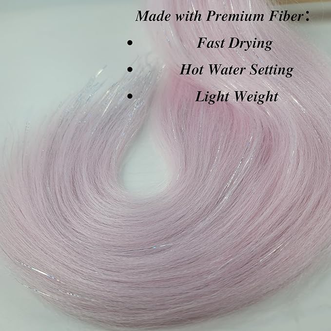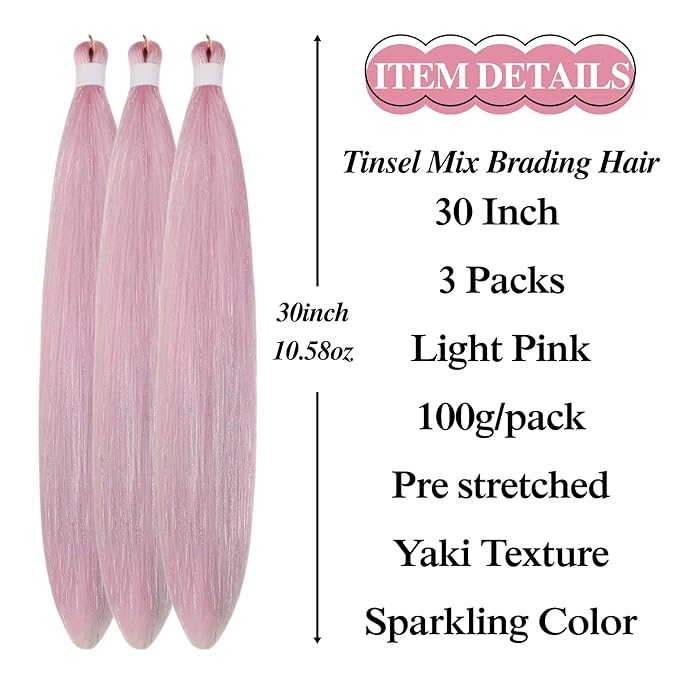 Tinsel Braiding Hair Pre stretched Light Pink Braiding Hair for Glitter Braids Festival Braids Non Toxic Hypoallergenic