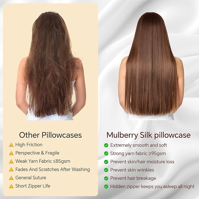 - 【Hidden Zipper Closure】--Mulberry silk pillowcases feature a hidden zipper closure, offering a sleek and stylish look, while making it easy to install and remove, maintaining a tidy appearance.