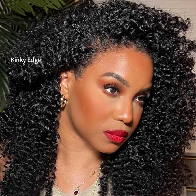 - 2.Kinky Edges Wig Hairline: The kinky curly wigs are pre plucked with baby hair in the front, it gives a super natural look just like your own hair. The lace is invisible and the kinky curly hairline will melt with your skin. It's the most popular natural hairline this year.