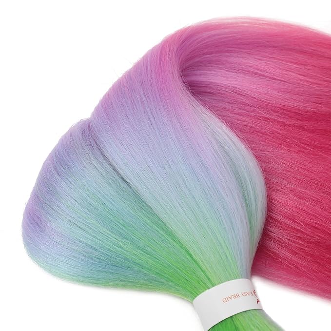 Dorsanee 3 Tone Braiding Hair Pre Stretched 24 Inch 3 Packs Braiding Hair Extensions for Box Braids Twists Locs Hair Soft Yaki Texture Hot Water Setting (#Light Green/Light Purple/Pink)