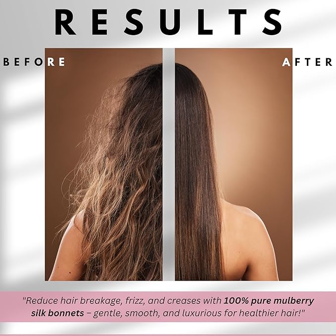 - LUXURIOUS 100% PURE SILK BONNET: Experience the ultimate in hair protection with our silk bonnet, crafted from 19 Momme 100% Grade 6A Mulberry Silk fabric on both sides. This silk bonnet for sleeping women helps protect hair from breakage and frizz while locking in your natural hair oils.