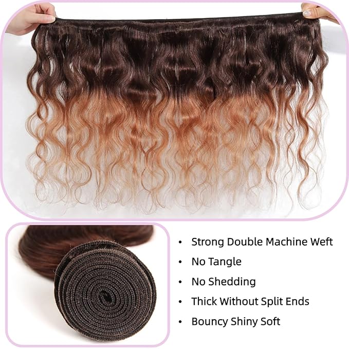 - Hair Color: Ombre Medium Brown/Medium Auburn Body Wave Bundles.Can Be Dyed And Bleached.