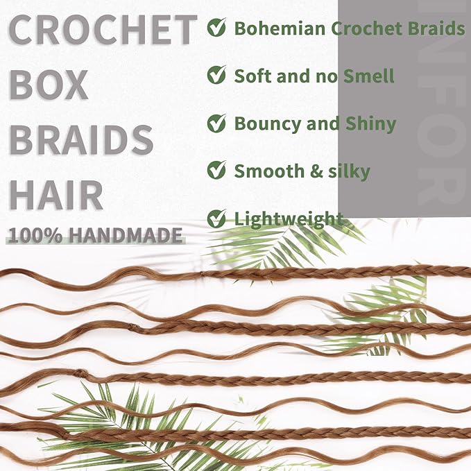 - Easy to install: This boho box braids crochet hair is pre-twisted and pre-looped, easy to pull the box braids through, no need to pry it open a bigger hole, it is super easy to install, save your much time and money