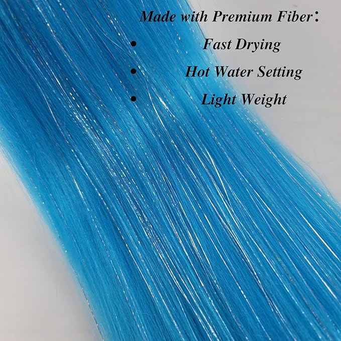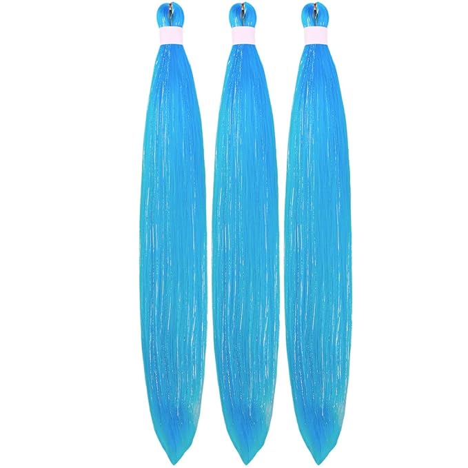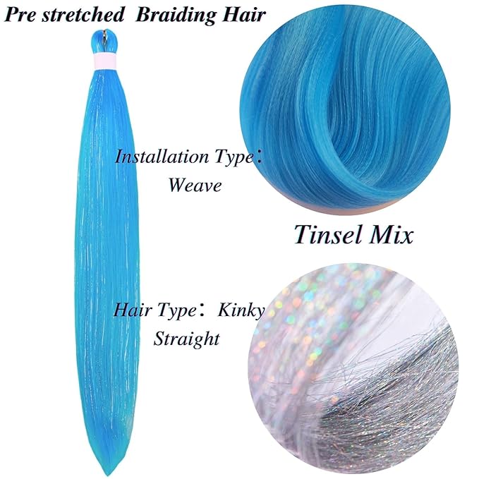 Tinsel Braiding Hair Pre stretched Neon Blue Braiding Hair for Glitter Braids Festival Cosplay Braids