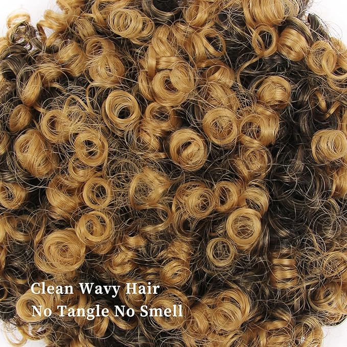 Afro Puff Ponytail for Black Women Culy Wavy Short Drawstring Ponytail Hair Extension Synthetic Mini Afro Bun(1B-27#)