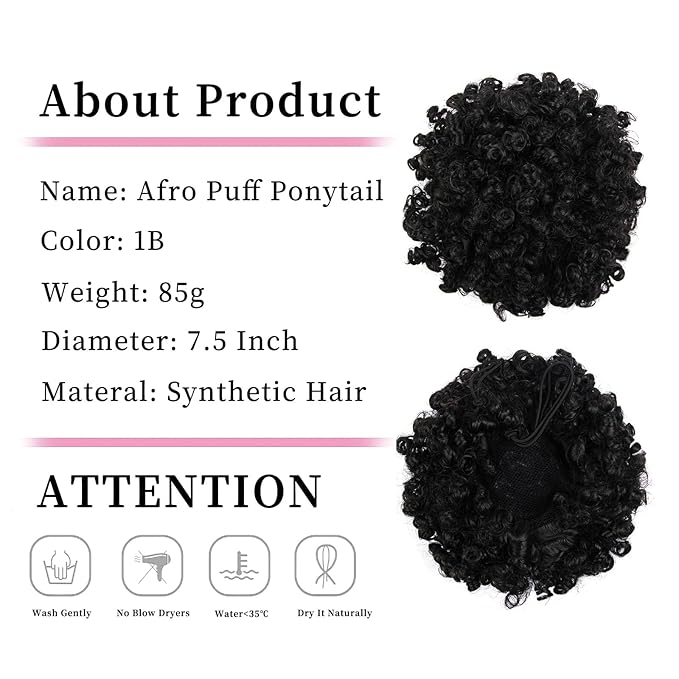 - 1. Culy wavy Afro puff drawstring ponytail design: The loose wave curls design is different from the previous kinky curly; Looks charming, cute and different; Curl lasts; If you want to change your hairstyle, african puffs will give you a wonderful experience