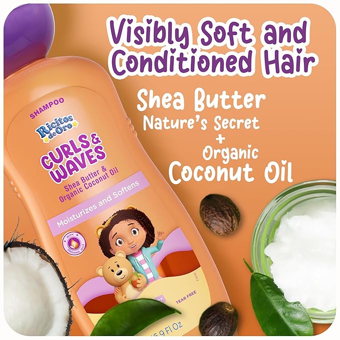 Ricitos de Oro Curls & Waves Shampoo: Defines & Highlights Natural Curls, Moisturizes & Smoothes, Frizz Control, Deep Cleanses Scalp, Baby Shampoo, Ideal for Kids & Toddlers, 16.9 oz, 2-Pack