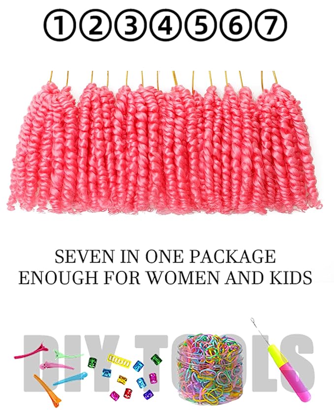 4 Inch 7 Packs Super Short Passion Twist Crochet Hair for Black Women and Kids-Pure Pink Pre Looped Pretwisted Soft Hair Extensions,Braided by Synthetic Spring Kinky Twist Bohemian Curl(4"-7P,Pink)