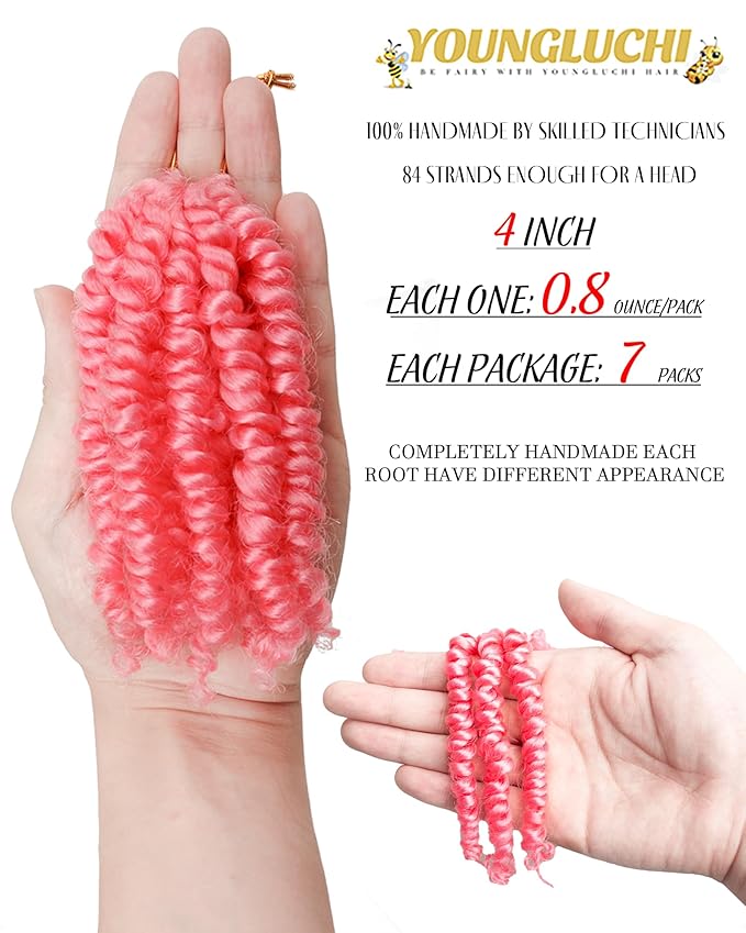 - Fasion Style:Youngluchi Pre-twisted Passion Twist Crochet Hair Is Made Of Spring Kinky Twist Bohemian Curls With High Quality Flame-retardant Hot Water Setting Low Temperature Synthetic Fiber.