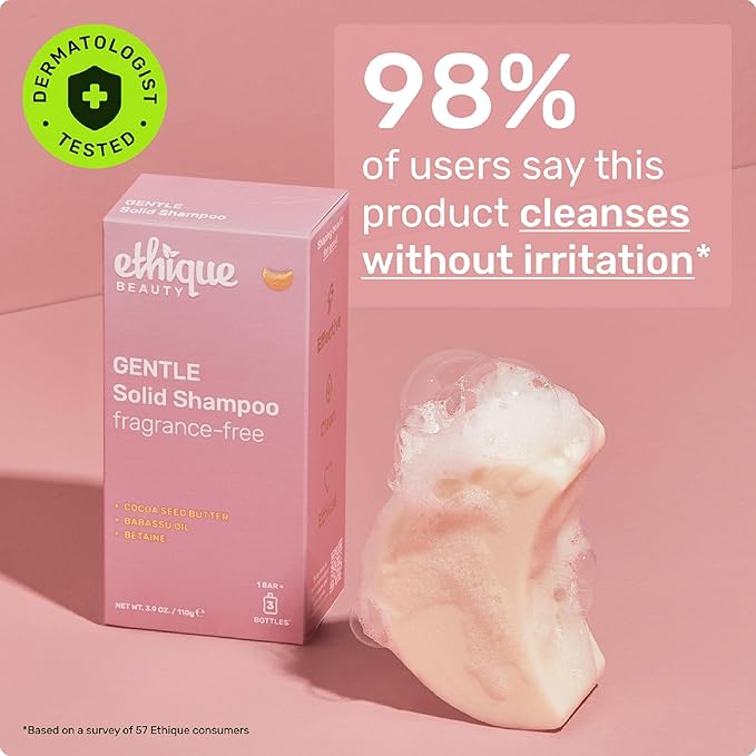 Ethique Gentle Unscented Shampoo Bar with Cocoa Butter - Plastic-Free, Cruelty-Free, Vegan, 3.88 oz - Formerly Bar Minimum