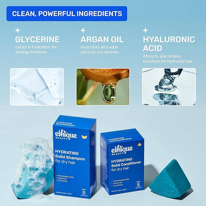 - HYDRATE & GLOW: Transform dry hair! Our Hydrating Conditioner Bar delivers intense hydration and shine with every use. Achieve healthier-looking hair with natural ingredients like hyaluronic acid for deep moisture, smoothing argan oil, and glycerine to seal in long-lasting hydration.