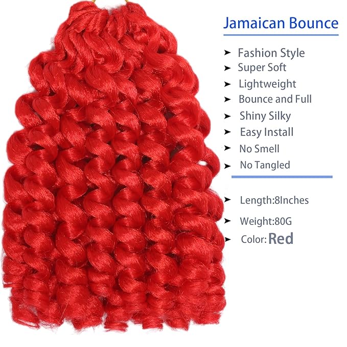 - Our 8 Inch Jamaican Bounce Crochet Hair is Natural Looking, and Touch as Human Hair.