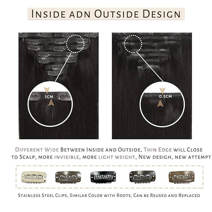 - ღ【Real Hair Extensions Clip in Human Hair】—We adopt real remy human hair with advanced sewing technology. Silky salon professional hair extensions like your own natural hair, no shedding, no tangling. Our seamless clip in hair extensions can be restyled, strengthened, curled, dyed.