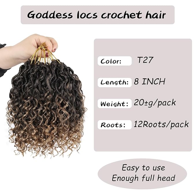 Goddess Locs Crochet Hair,8 Inch 9 Packs Faux Locs Synthetic Crochet Hair for Black Women, Boho Style Pre looped crochet with Curly Ends