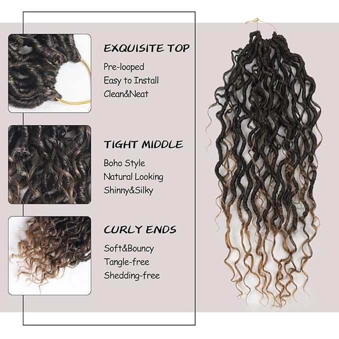 - 【Goddess Locs Crochet Hair Features】: Crochet hair for black women, soft and lightweight, comfortable to wear, stylish and unique appearance, with loose curly hair at the middle and end, looking natural and full, with a sense of design