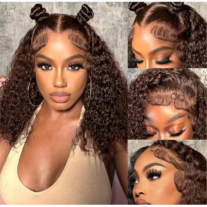 - 【 220% Deep Wave Lace Front Wigs Human Hair Quality】:Chocolate Brown Lace Front Wig,Curly Wig Human Hair ,Swiss Lace Suitable for All Skin Colors, Soft and Thinner, Comfortable and Breathable, Super Small Bleached Knots to Make Natural Look, Hand-Crafted Technology, Simulated Scalp,