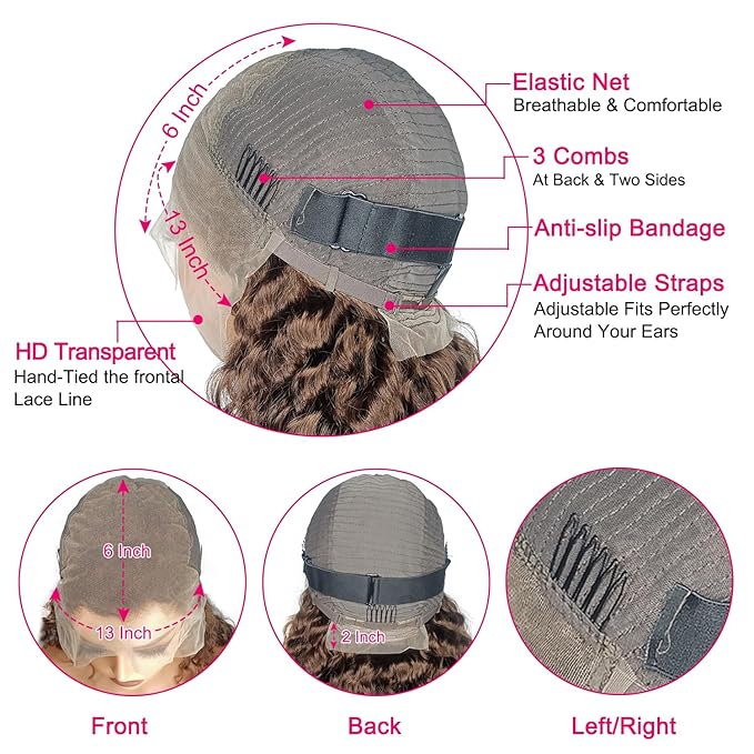 - Chocolate Brown Human Hair Wig Details: Women's real hair wigs are made of the finest swiss HD clear lace, blend perfectly into your skin, soft and breathable, invisible, suitable for all skin tones, 22.5 inches (average hat), suitable for most For women, the 4 combs are fixed on the head, and the two adjustment straps can be adjusted to suit different head sizes, giving you a more comfortable wearing experience. Breathable and durable lace material makes it more comfortable.