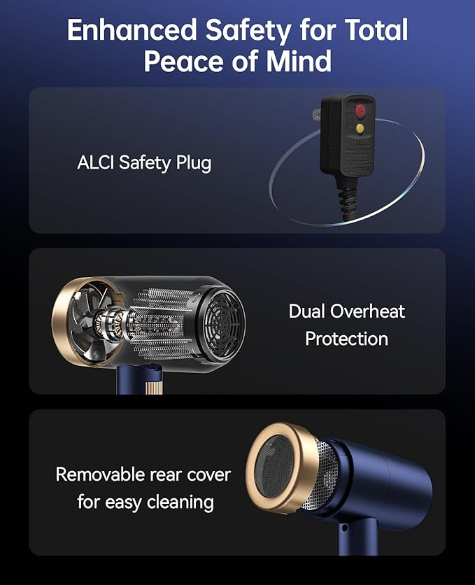 - 【Hair Dryer with Diffuser】 With 1 Concentrator & 1 Diffuser for All Hair Types, Concentrators nozzle is ideal for precision styling on straight, smooth hair. Diffuser designed to enhance your natural curl and texture,Designed with double safety removable back cover, your hair will not get sucked into the blow dryer easily, and it is easy to clean.Kind Tips: Please do not touch the air nozzle during use to prevent burns.