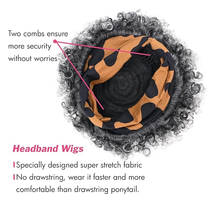 - [Creative design]: This No drawstring short kinky curly headband wig is an innovative design,This is designed for fashion conscious women who don't have time to get their hair done. It is not only fashionable and natural, but also very very easy to wear. Ladies,It's a great solution for you who don't have much time to take care of your hair.