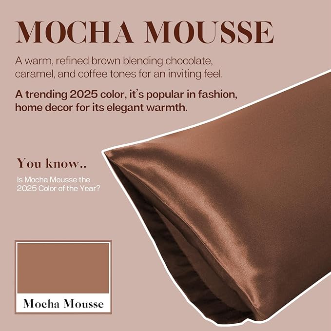 MR&HM Satin Body Pillow Cover, Soft and Breathable Body Pillow Case with Envelope Closure, Cooling and Silky Long Pillowcase for Hair and Skin,Grey (20x54, Mocha Mousse)