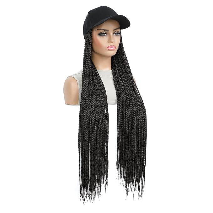 - FEATURES: Baseball cap with 3X full braids hair extensions, about 60 roots box braids, no twist.