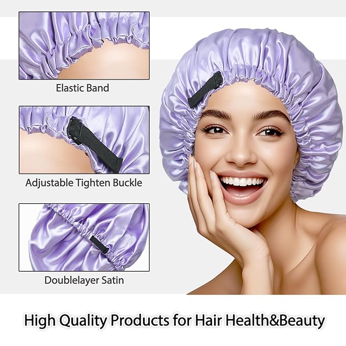 - Premium Quality & Luxurious Material: This bonnet is made of satin fabric. Soft to the touch like silk, smooth and breathable, preventing overheating, providing excellent protection and comfort during sleep. Smooth satin fabric is very soft and gentle on hair, reducing friction and preventing frizz.The double layer satin fabric design helps to lock in moisture, improve hair texture, and ensure that your hair remains hydrated and in its best condition.