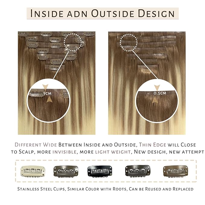 - ღ【Real Hair Extensions Clip in Human Hair】—We adopt real remy human hair with advanced sewing technology. Silky salon professional hair extensions like your own natural hair, no shedding, no tangling. Our seamless clip in hair extensions can be restyled, strengthened, curled, dyed.