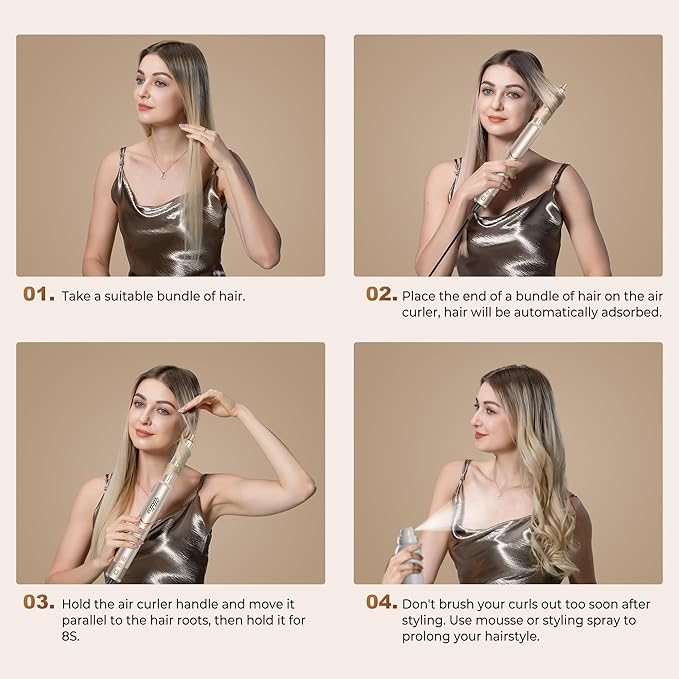 - AUTO-WRAP CURL TECHNOLOGY HAIR AIR STYLER FOR SALON QUALITY: UKLISS magic styler air styler Features a 1.25-inch automatic air curler attachment with COANDA Effect technology that automatic grips hair; creates left/right curls with consistent, voluminous results—multi hair styling tool unlike manual curlers that often leave ends frizzy or shapes uneven, air hair curler delivers pro-level curls in one step at home.