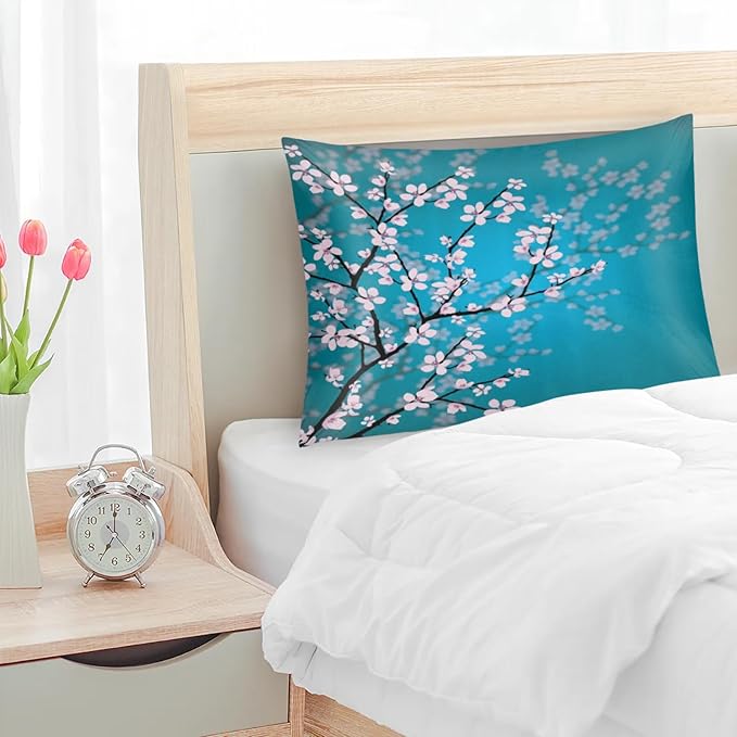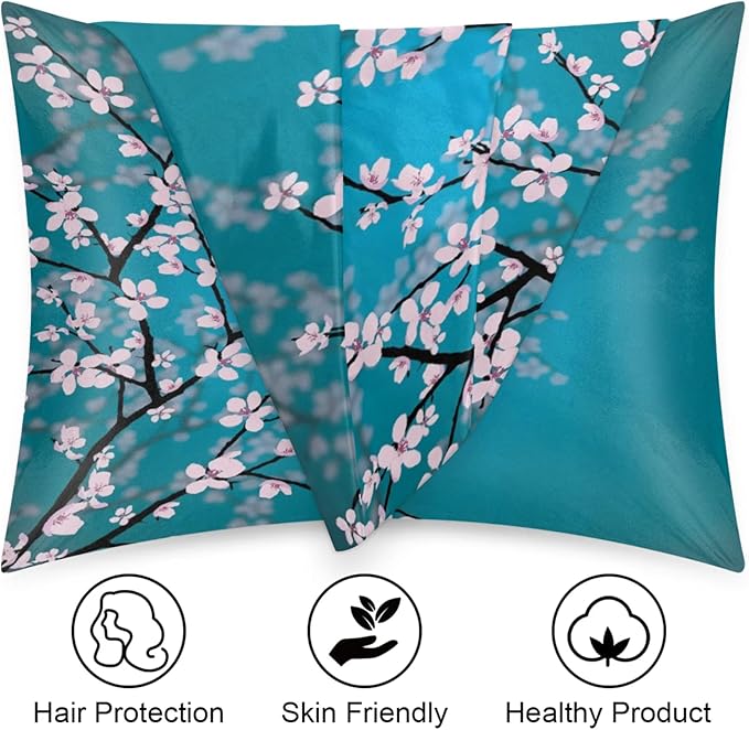 Cherry Blossom Silky Satin Pillowcase for Hair & Skin, Bed Pillow Cases with Hidden Zipper Soft Breathable Pillow Covers for Sleeping Standard Size, 20x26in